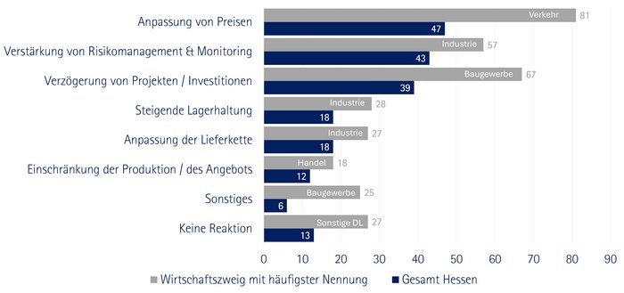 Die Grafik stellt die einzelnen Reaktionen dar und zeigt deren Verbreitung unter den befragten Unternehmen in Prozent, Mehrfachnennung waren möglich.
